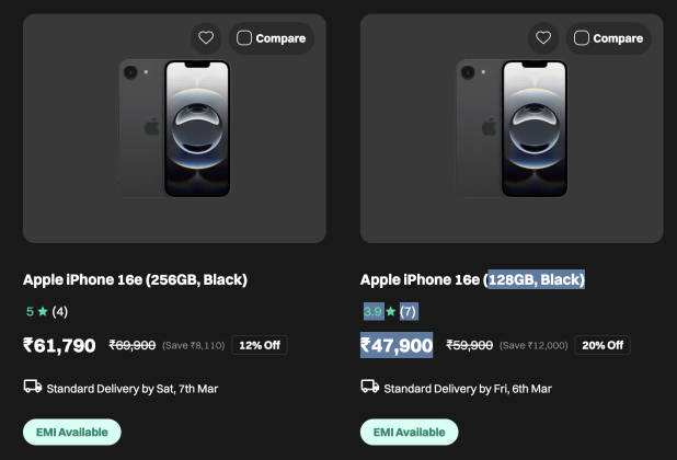 ये वाला सबसे सस्ता आईफोन क्रोमा पर ही बिक रहा है। कम रेट में iPhone 16e खरीदने या डील की डिटेल जानने के लिए (यहां क्लिक करें)