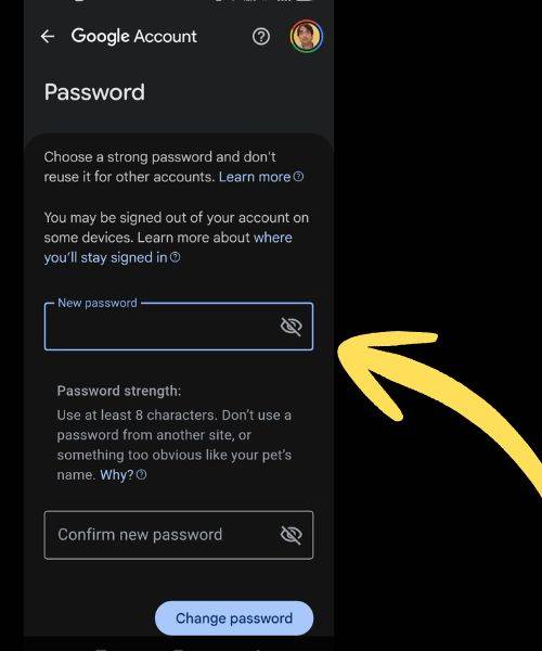 जैसे ही आप पासवर्ड बदलते हैं, आपका अकाउंट दूसरे डिवाइसेस से साइन आउट हो सकता है। इसलिए नया पासवर्ड सुरक्षित जगह पर याद रखें या नोट कर लें।