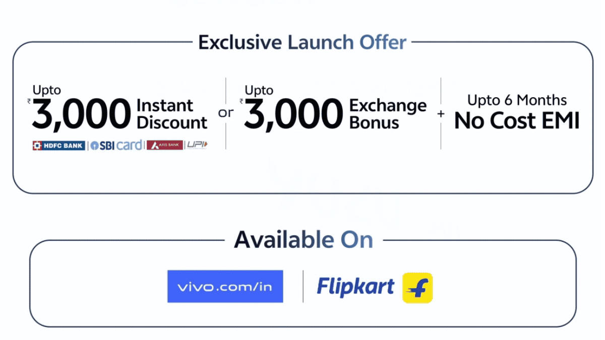 वीवो फोन पर डिस्काउंट पाने के लिए HDFC, SBI या Axis बैंक कार्ड से पेमेंट करनी होगी। वहीं अगर आप फोन परचेज करते वक्त UPI ट्रांजेक्शन करेंगे तो भी कंपनी 3,000 रुपये का डिस्काउंट देगी। इसके अलावा वीवो टी5 प्रो 5जी फोन को खरीदते वक्त पुराना फोन एक्सचेंज कराने पर 3 हजार रुपये का एक्सचेंज बोनस प्राप्त होगा। यह वीवो फोन 6 महीने की नो-कॉस्ट ईएमआई पर भी पाया जा सकता है। फोन को Cosmic Black और Glacier Blue कलर में खरीदा जा सकता है।
