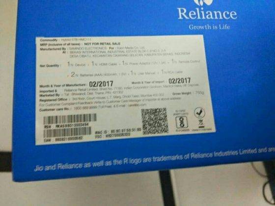इकोनॉमिक टाईम्स ने खबर प्रकाशित करते हुए रिलायंस जियो के सेटअप बॉक्स और उसकी पैकेजिंग की फोटोज़ सार्वजनिक की है। ईटी ने अपनी रिपोर्ट में कहा है कि जियो जल्द ही अपनी डीटीएच सर्विस शुरू कर सकती है। माना जा रहा है कि जियो अपनी सर्विस के साथ नेटफ्लिक्स व अमेज़न प्राईम से भी करार कर सकती है।