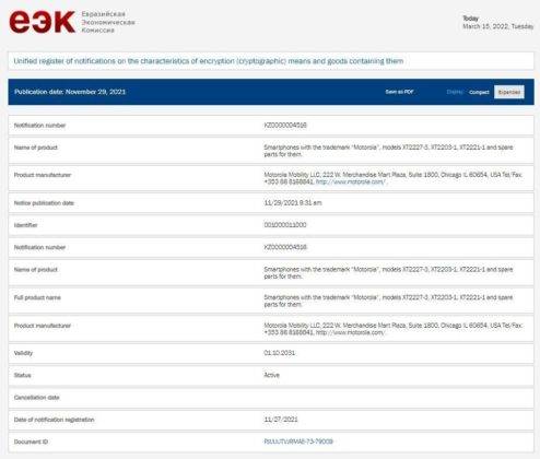 Motorola Edge 30 स्मार्टफोन को मॉडल नंबर XT2203-1, Moto G52 स्मार्टफोन को मॉडल नंबर XT2221-1, Moto E32 स्मार्टफोन को मॉडल नंबर XT2227-3 और Lenovo K15 स्मार्टफोन को मॉडल नंबर XT2227-4 के साथ TDRA डेटाबेस में लिस्ट किया गया है।