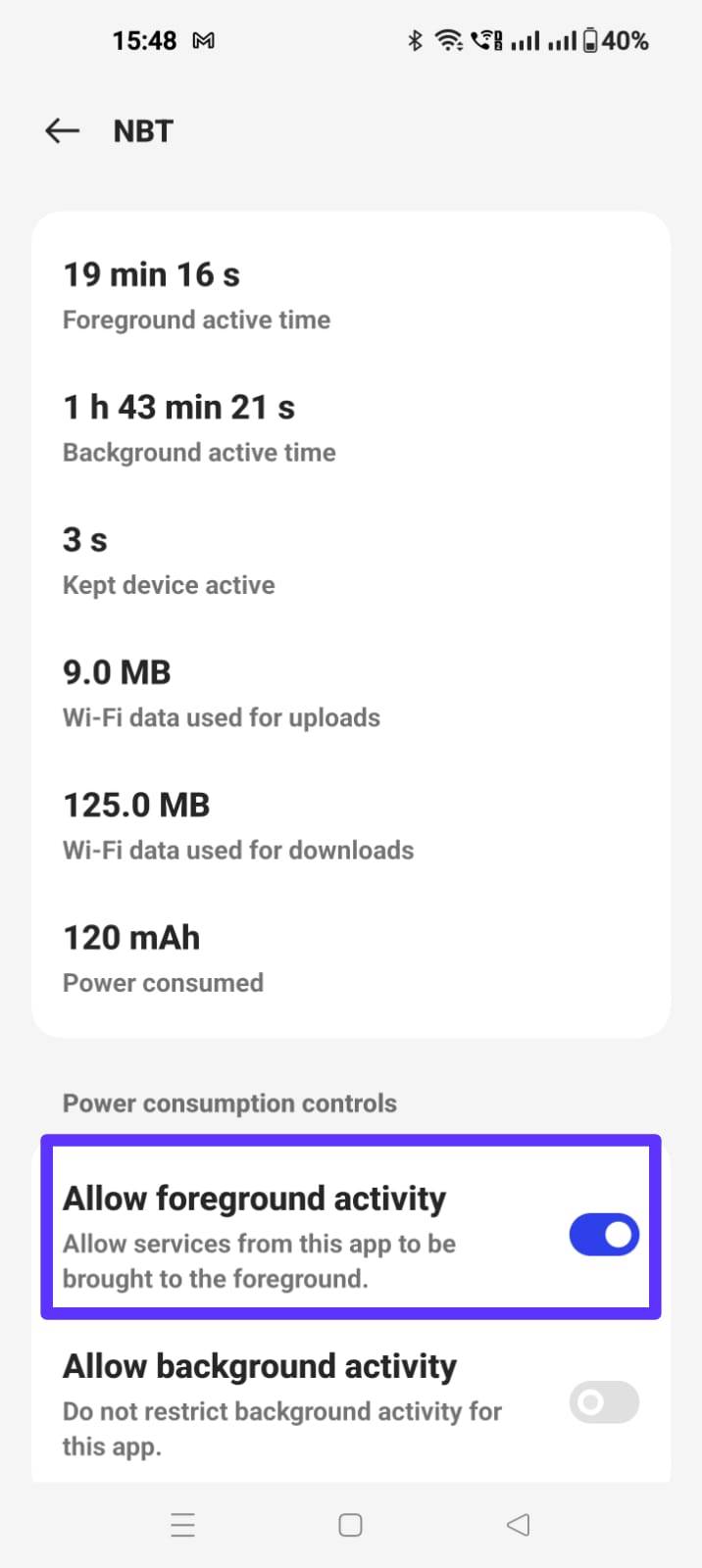 स्टेप-2: जो ऐप ज्यादा बैटरी की खपत कर रहा है, उस पर टैप करें। आपको यहां पर अलाउ फोरग्राउंड एक्टिविटी का टॉगल दिखाई देगा, जिसे ऑफ कर दें। इसके बाद अगर ऐप का उपयोग नहीं कर रहे हैं, तो वह बैटरी का उपयोग नहीं करेगा।