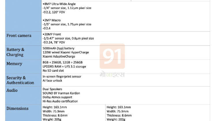 - चार्जर- 120W wired Xiaomi HyperCharge
