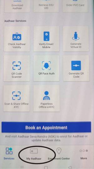 - चरण-3: इसके बाद होम स्क्रीन पर आपको ‘माय आधार टैब‘ में जाना होगा।