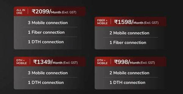 | Rs 2099 | 3 mobile connections, 1 DTH and 1 Fiber line |
