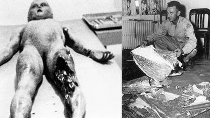 फोटो में दिख रहे पुर्जे और कबाड़ को टूटे हुए यूएफओ तथा एलियंस की ड्रेस का हिस्सा बताया जा रहा है :-
