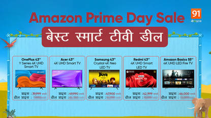 ऑनलाइन शॉपिंग प्लेटफ़ॉर्म अमेजन पर Amazon Prime Day सेल शुरू हो गई है। अमेजन पर चल रही प्राइम डे सेल के दौरान स्मार्टफोन, स्मार्ट टीवी से लेकर कई तरह के प्रोडक्ट पर धमाकेदार डिस्काउंट मिल रहा है। अगर आप अपने घर के टीवी सेट को बदल कर अपग्रेड करना चाहते हैं तो अमेजन प्राइम डे सेल सबसे बेहतर मौका है। अमेजन पर फिलहाल स्मार्ट टीवी पर जबरदस्त ऑफर मिल रहे हैं। ऑनलाइन शॉपिंग प्लेटफॉर्म पर OnePlus, Samsung, Xiaomi और दूसरे ब्रांड के स्मार्ट टीवी पर जबरदस्त डिस्काउंट मिल रहा है। यहां हम आपके साथ अमेजन प्राइम डे सेल के दौरान मिल रहे स्मार्ट टीवी डील्स के बारे में बता रहे हैं।