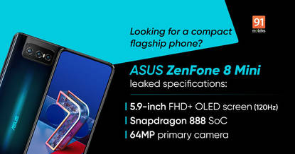 लीक्स पर भरोसा करें तो Asus Zenfone 8 Mini स्मार्टफोन को फ्लैगशिप Qualcomm Snapdragon 888 चिपसेट के साथ 16GB तक RAM और 256GB UFS 3.1 फ्लैश स्टोरेज के साथ पेश किया जा सकता है। Asus Zenfone 8 Mini स्मार्टफोन में कंपनी 4000mAh की बैटरी के साथ 30W फास्ट चार्जिंग टेक्नोलॉजी ऑफर कर सकती है। यह भी पढ़ें : Samsung Galaxy Note 21 नहीं होगा लॉन्च, Galaxy Z Flip 3 या Galaxy Z Fold 3 ले सकते हैं इसकी जगह