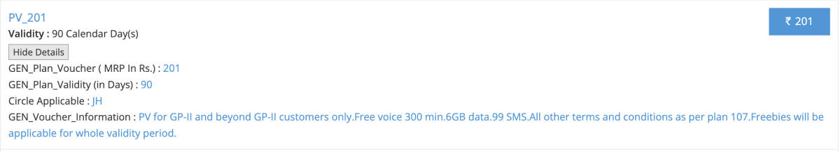 बीएसएनएल का 201 रुपये वाला प्लान 90 दिन की वैलिडिटी के साथ ही कॉलिंग, डाटा और एसएमस बेनिफिट्स भी देता है। सिर्फ इतना ही नहीं ये वाला रिचार्ज कराने पर बीएसएनएल हैलो ट्यून की सुविधा भी मिलती है। इस प्लान में मिलने वाले फायदे हैं: