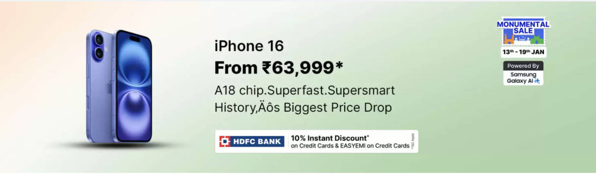 फ्लिपकार्ट मॉन्यूमेंटल सेल 13 जनवरी से शुरू हो चुकी है जो 19 जनवरी तक चलेगी। इस सेल में सस्ता आईफोन खरीदने के लिए (यहां क्लिक करें)