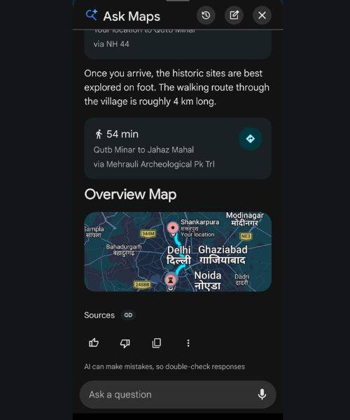 हां, Ask Maps की सबसे बड़ी खासियत यही है कि यह जटिल और मल्टी-पार्ट सवालों को भी समझ सकता है। आप माइक्रोफोन आइकन पर टैप करके वॉइस के जरिए भी सवाल पूछ सकते हैं जैसे-“मेरे पास 20 मिनट हैं, आसपास शांत कैफे बताओ जहां Wi-Fi अच्छा हो और भीड़ कम हो।” यह फीचर आपके पूरे सवाल का विश्लेषण करके उसी हिसाब से रिजल्ट देता है। साथ ही, आप बातचीत जारी रखकर रिजल्ट को और refine भी कर सकते हैं।