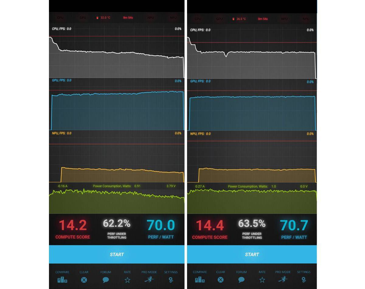 Geekbench टेस्ट स्मार्टफोन के प्रोसेसर की क्षमता को मापता है। यह मुख्य रूप से CPU और मेमोरी की उपलब्धता पर निर्भर करता है। परीक्षणों के लिए हमने दोनों स्मार्टफोन्स के 8GB RAM वेरिएंट की तुलना की है।