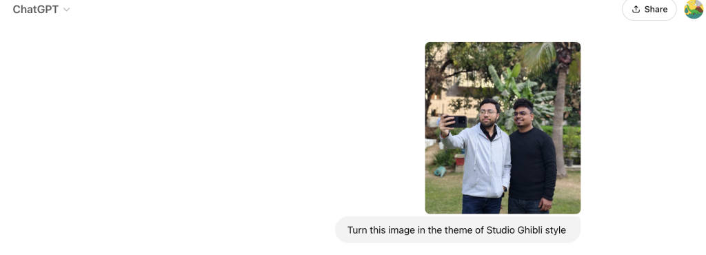 स्टेप 3-इसके बाद कमांड टाइप करें: “Ghiblify this” या “Turn this image into a Studio Ghibli theme”