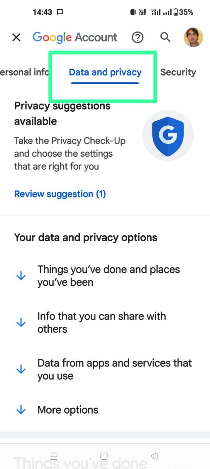 स्टेप-2: यहां आपको टॉप पर ही Data and privacy का ऑप्शन दिखेगा, आपको उस पर जाना है।