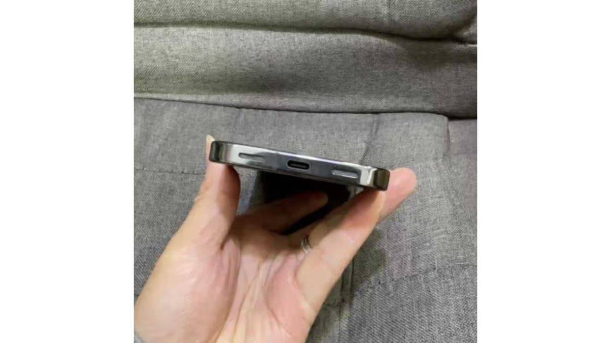- Pixel 10 Pro एक डार्क ग्रे कलर में दिखाई देता है जिसमें पीछे एक मोटा कैमरा आइलैंड, सामने पतले बेजल्स, नीचे डुअल स्पीकर स्लिट्स और एक USB-C पोर्ट और ऊपर की ओर एक SIM कार्ड ट्रे दी गई है।