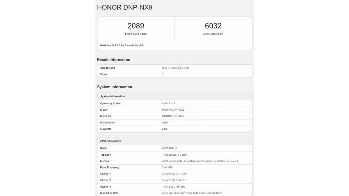 - Honor 400 Pro के ग्लोबल वैरियंट को मॉडल नंबर DNP-NX9 के साथ Geekbench पर लिस्ट किया गया है।