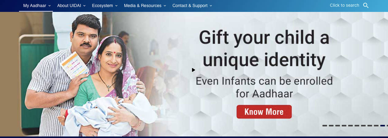 1. अपने लाडले का आधार कार्ड पाने के लिए सबसे पहले UIDAI की ऑफिशियल वेबसाइट पर जाना होगा। इसके लिए (यहां क्लिक करें)