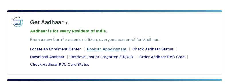 2. यहां Book an Appointment सेक्शन में आधार रजिस्ट्रेशन लिंक पर क्लिक करें।