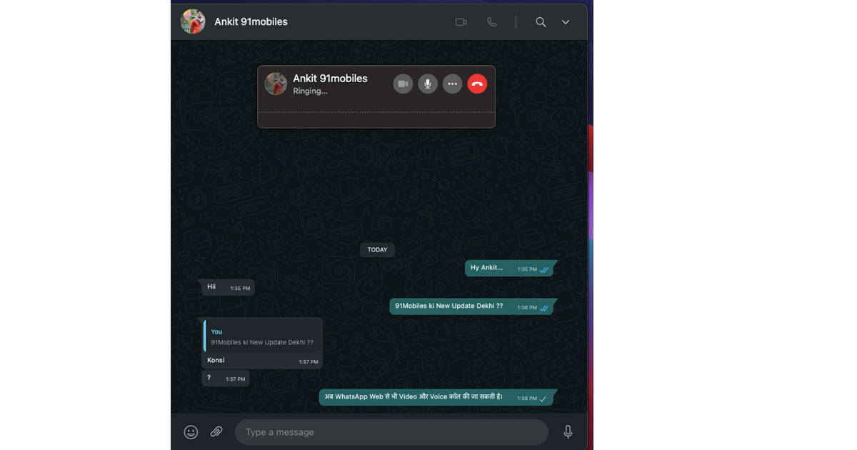 WhatsApp ने इंडिया में अपनी एंट्री के बाद से पीछे मुड़कर नहीं देखा है। शुरूआत जहां Free Chatting के साथ हुई थी वहीं बाद में फोटो, ऑडियो व वीडियो कंटेंट शेयरिंग के साथ ही आज यह App कॉलिंग का भी प्रमुख जरिया बन चुकी है। अपने यूजर्स की सहूलियत का ध्यान रखते हुए व्हाट्सऐप भी समय-समय पर नई-नई अपडेट लाती रहती है और इसी कड़ी में कंपनी ने Desktop Calling का फीचर भी इंडिया में रोलआउट कर दिया है। इस फीचर के बाद लोग बिना मोबाइल के अपने Laptop व Computer से ही WhatsApp Video Call और Voice Call कर सकते हैं।