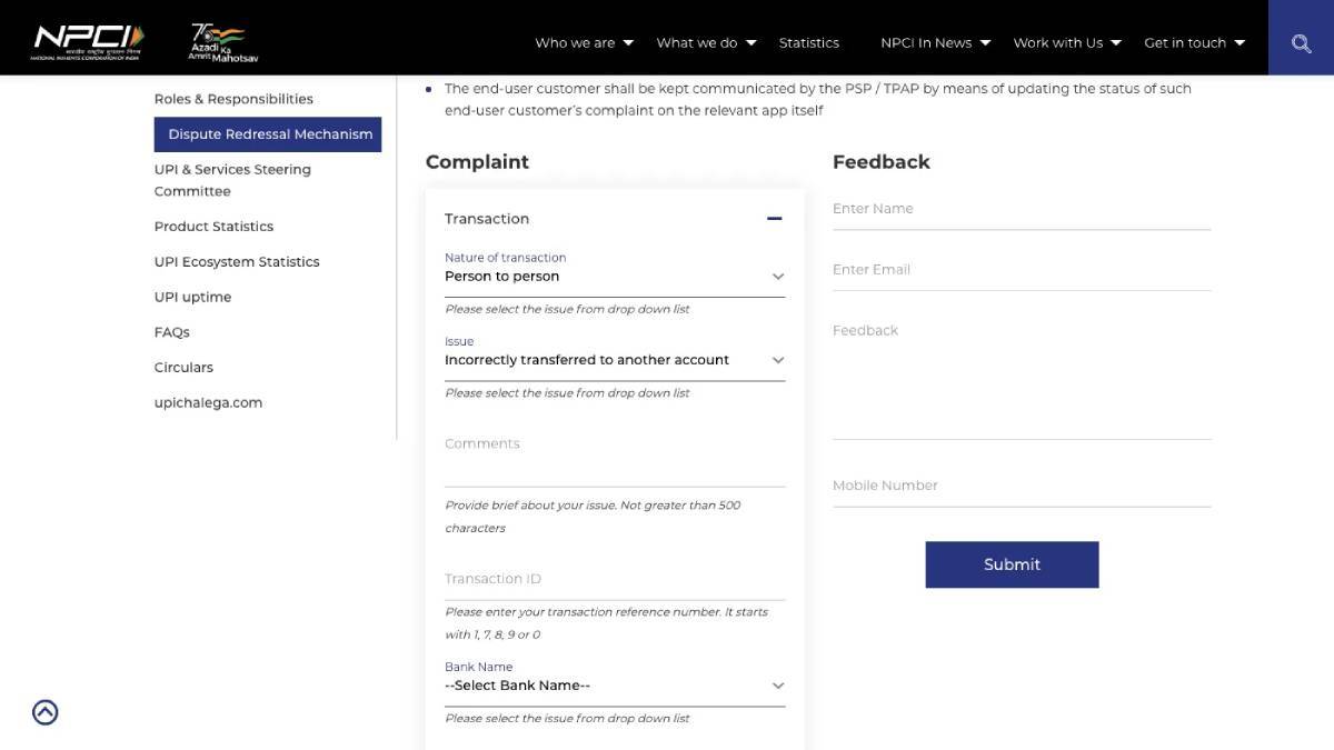 NPCI पोर्टल पर शिकायत करें दर्ज
