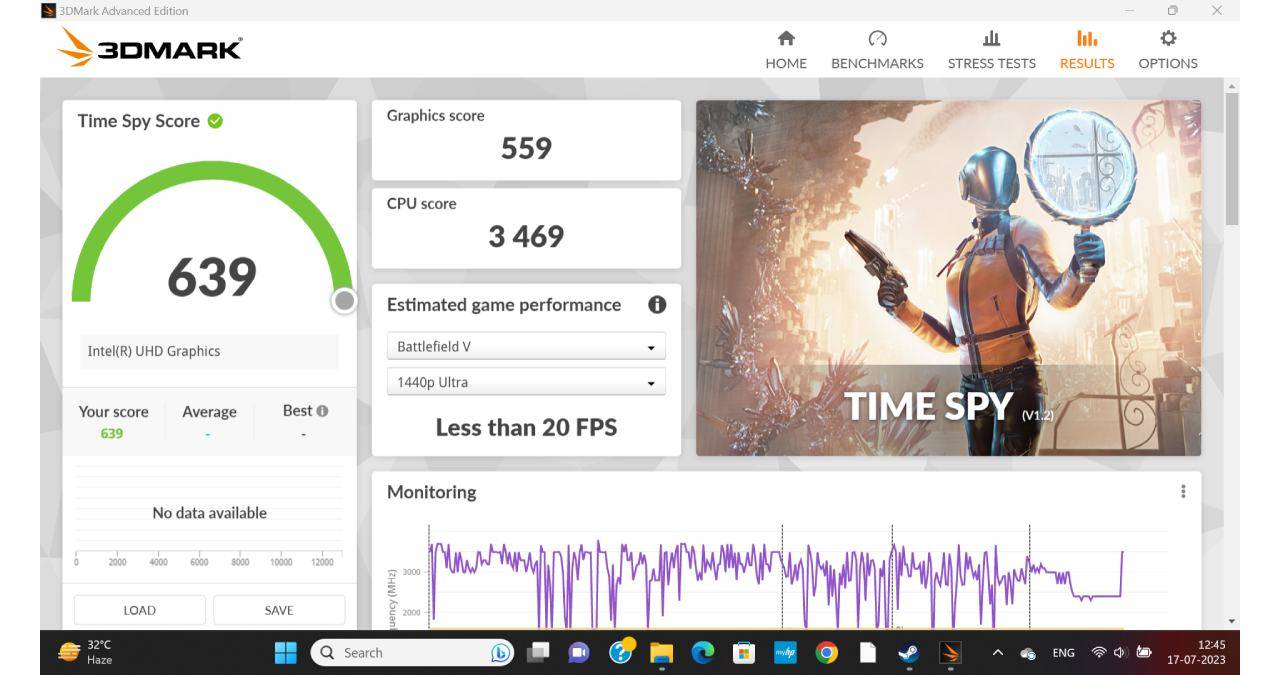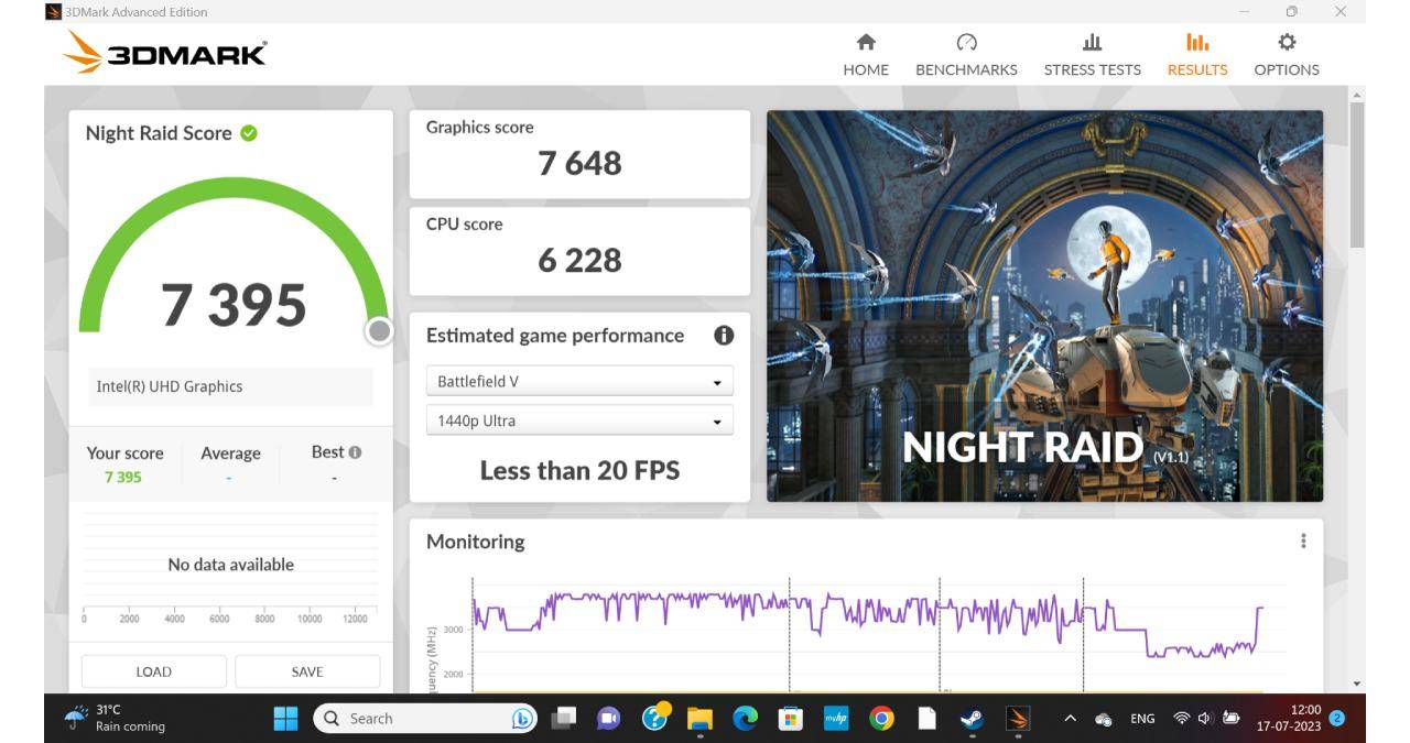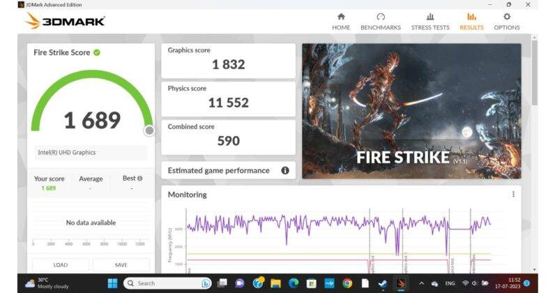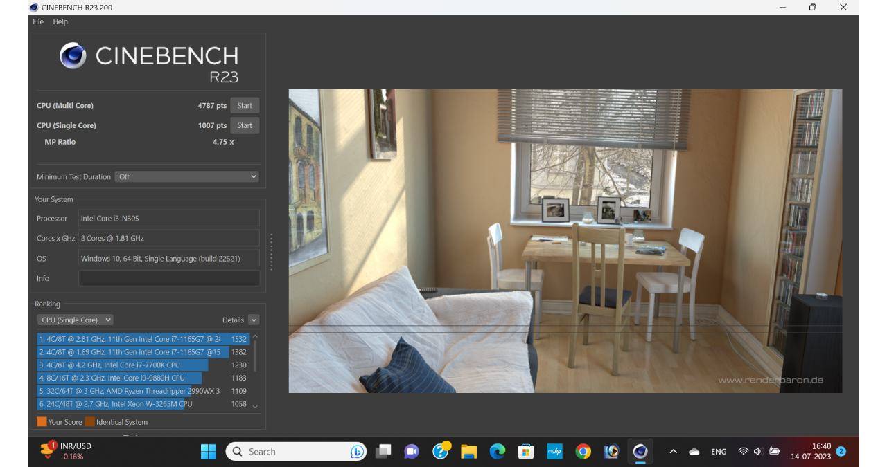 वहीं सीपीयू परफॉर्मेंस की बात की जाए, तो पीसीमार्क 10 पर यह लैपटॉप 3695 तक का स्कोर गया जो कि एवरेज है। वहीं 3डी मार्क पर फायर स्ट्राइक स्कोर 1,689 तक का रहा और 3डी मार्क स्पाई स्कोर 639 तक का कर पाया। 3डी मार्क नाइट रेड टेस्ट पर यह पीसी 7395 ग्राफिक्स स्कोर कर पाया। ये स्कोर बजट के लिहाज से अच्छे हैं। इसके अलावा, हमने सिनेबैंच आर23 रन किया, जहां यह पीसी मल्टीकोर पर 4,787 तक का स्कोर कर पाया जो कि काफी अच्छा रहा।