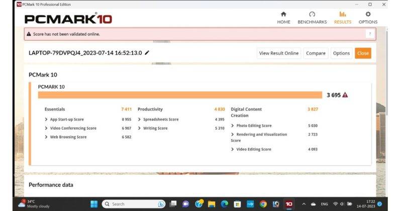 हालांकि हमें सबसे ज्यादा प्रभावित पीसीमार्क 10 स्कोर ने किया। यहां पर लैपटॉप वीडियो स्कोर में 8 घंटे से भी ज्यादा का स्कोर कर पाया, जो कि शानदार कहा जा सकता है। इस स्कोर को देखने के बाद यही कहा जा सकता है कि यदि आप एक बार पूरी तरह से इस लैपटॉप को चार्ज कर लेते हैं, तो दिनभर के हैवी यूज के बाद भी बैटरी खत्म नहीं होगी। कंपनी ने इसमें 3-सेल, 41 वॉट का लियोन बैटरी दिया है, जो कि आपको प्रभावित करेगा। परफॉर्मेंस के मामले में कहा जा सकता है कि यह पीसी औसत है। इस बजट में इससे बेहतर डिवाइस आपको मिल जाते हैं। हालांकि बैटरी शानदार है।