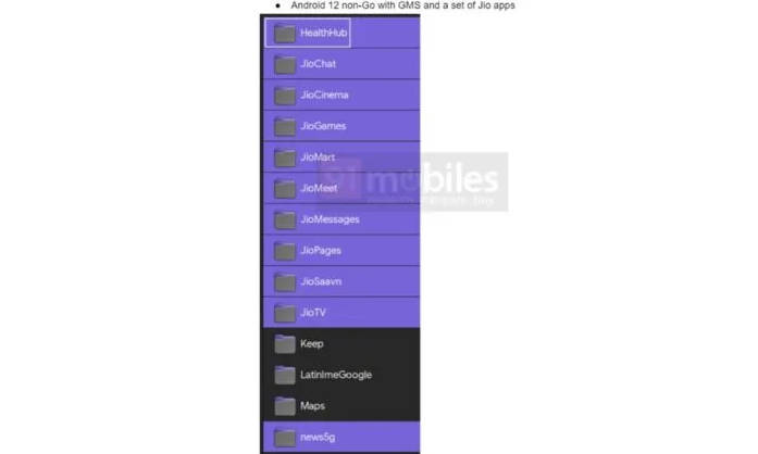 Jio Phone 5G Specification: इंडिया में जल्द ही 5G मोबाइल सर्विस (5G Service) की शुरुआत होने वाली है। वहीं, ऐसे में सभी टेलिकॉम कंपनियों से आगे रहने के लिए रिलायंस जियो (Jio) सबसे पहले अपने 5G Network को लाइव करने के साथ ही बहुत ही सस्ते 5जी स्मार्टफोन यानी Jio Phone 5G को पेश करने की पूरी प्लानिंग में है। हाल ही में (Jio 5G Phone Price) इस फोन की कीमत के बारे में खुलासा हुआ था। वहीं, अब लीक फर्मवेयर के माध्यम से Jio Phone 5G specifications सामने आए हैं। दरअसल, डेवलपर Kuba Wojciechowski द्वारा 91mobiles को एक्सक्लूसिव तौर पर यह जानकारी दी गई है। आइए आगे जानते हैं कि Jio Phone 5G में क्या कुछ खास होगा। इसे भी पढ़ें: Jio 5G की 5 बड़ी बातें, जानें क्यों होगा यह देश के लिए खास
