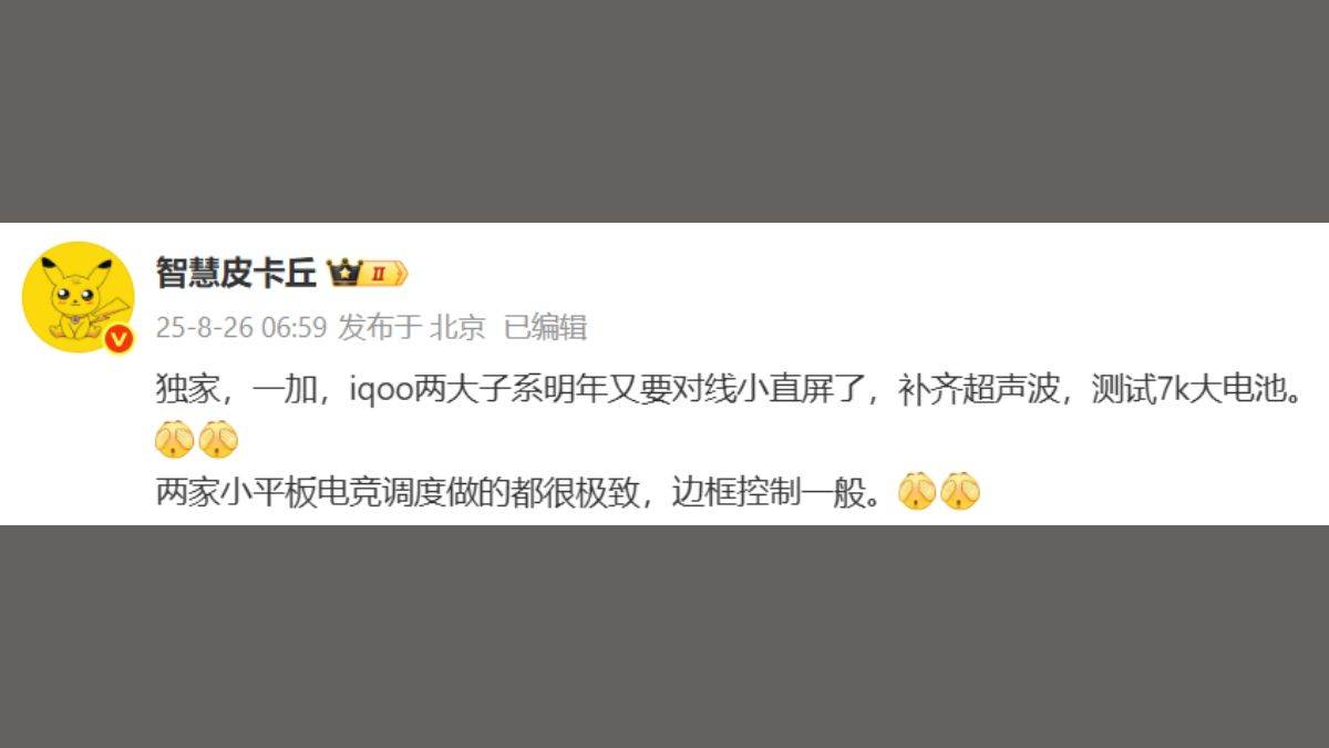 टिप्स्टर स्मार्ट पिकाचू के अनुसार साल 2026 में OnePlus और iQOO दोनों कंपनियां कॉम्पैक्ट फ्लैट-स्क्रीन वाले स्मार्टफोंस लेकर आ सकती हैं। जहां वनप्लस का डिवाइस फिलहाल OnePlus 15T नाम से चर्चा में बना हुआ है। आईक्यू का फोन संभवतः आगामी iQOO 15 सीरीज के तहत आ सकता है। हालांकि जैसा की हमने पहले बताया है नाम अभी पता नहीं चला है, लेकिन ये iQOO 15 Mini या iQOO 15T हो सकता है।