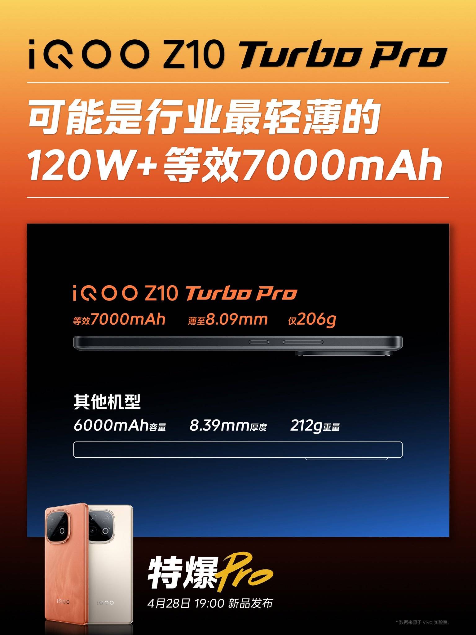 iQOO Z10 Turbo Pro को 7,000mAh की बड़ी बैटरी के साथ लॉन्च किया जाएगा, जिसमें 120W फास्ट चार्जिंग सपोर्ट मिलेगा। कंपनी का दावा है कि यह डिवाइस केवल 33 मिनट में 0 से 100% तक चार्ज हो जाएगा। यह पिछली Z9 Turbo के मुकाबले काफी तेज है, जो 58 मिनट लेती थी।