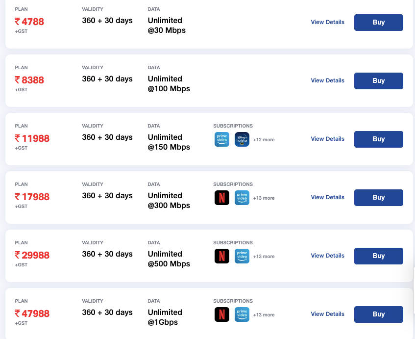999 रुपए और 1499 रुपए वाला प्लान