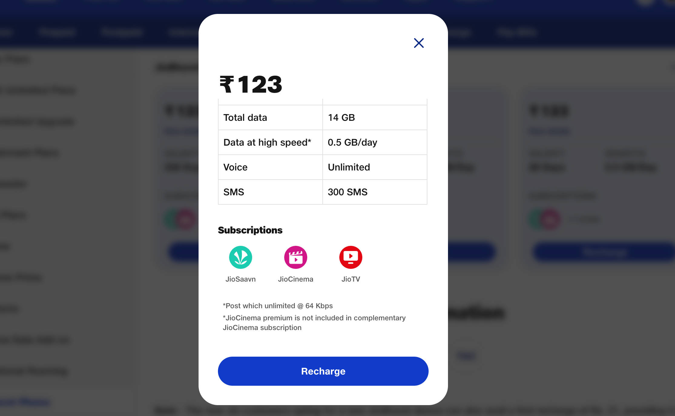 - इतना ही नहीं यूजर्स को इस रिचार्ज में JioSaavn Subscription, JioCinema Subscription और JioTV का सब्सक्रिप्शन मिलेगा।