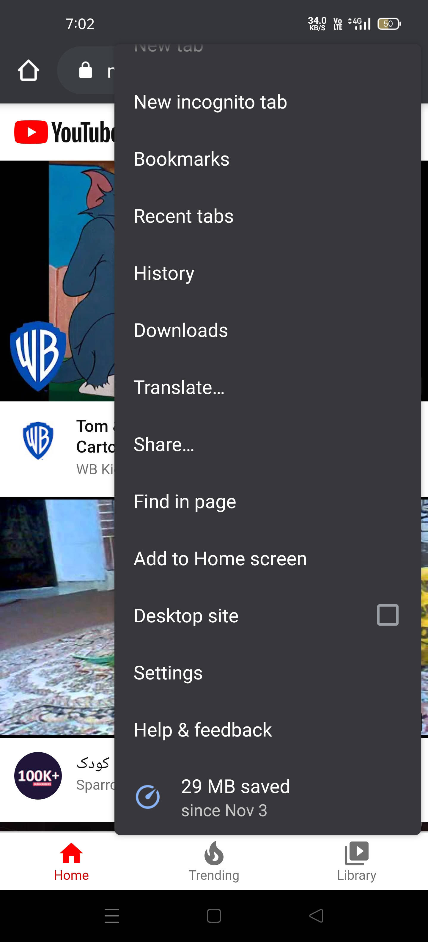 3. यहां ऑप्शन्स की एक लिस्ट खुलेगी, उसमें नीचे जाकर ‘Desktop Site’ पर क्लिक करें।