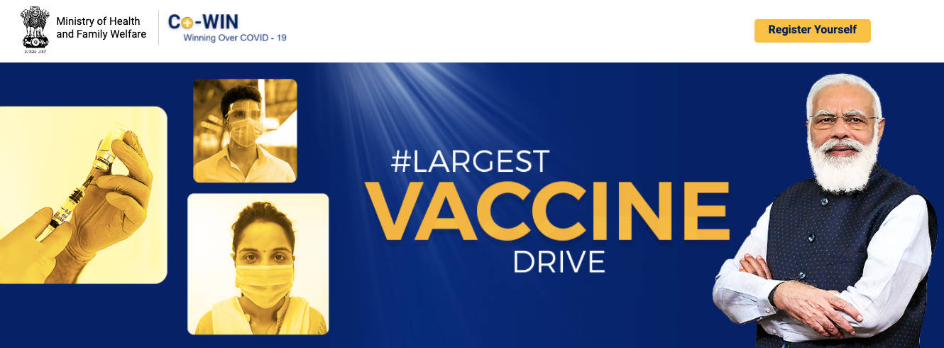 1. Covid-19 Vaccine लगवाने के लिए सबसे पहले आपको खुद को Co-WIN की आधिकारिक वेबसाइट पर रजिस्टर करना होगा। इसके लिए वेबसाइट पर क्लिक करें।