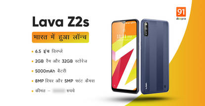 Lava ने भारत में एंट्री लेवल में नया स्मार्टफोन लॉन्च किया है। ये कंपनी की Z सीरीज का फोन है, जिसे कंपनी ने Lava Z2s के नाम से पेश किया है। लावा का ये लेटेस्ट स्मार्टफोन 6.5-इंच की HD+ डिस्प्ले के साथ पेश किया गया है। लावा का यह फोन MediaTek के बजट ओक्टा-कोर Helio चिपसेट के साथ पेश किया गया है। लावा ने फिलहाल यह नहीं बताया कि फोन को मीडियाटेक के किस चिपसेट के साथ पेश किया गया है। Lava का लेटेस्ट स्मार्टफोन को कंपनी ने Android 11 (Go Edition) के साथ पेश किया है। यह फोन 2GB की RAM और 32GB इंटरनल स्टोरे के साथ लॉन्च किया गया है। लावा के लेटेस्ट Lava Z2s फोन में 8-मेगापिक्सल रियर फेसिंग कैमरा और 5-मेगापिक्सल का फ्रंट कैमरा दिया गया है। फोन में 5000mAh की बैटरी दी गई है। यहां हम आपको Lava Z2s स्मार्टफोन की डिटेल स्पेसिफिकेशन्स और कीमत के बारे में जानकारी दे रहे हैं।