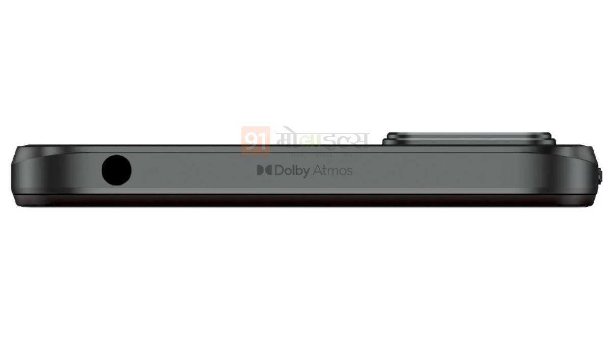 वहीं फोन के फ्रंट में वॉटर ड्रॉप नॉच वाली स्क्रीन है। फोन के दाएं पैनल में वॉल्यूम रॉकर और पावर बटन है जबकि दूसरी ओर SIM कार्ड स्लॉट दिया गया है। सबसे खास बात कही जा सकती है कि इस बजट फोन में भी पिछले पैनल पर फिंगरप्रिंट स्कैनर नहीं दिया गया है। ऐसे में आशा यही कर सकते हैं कि पावर बटन पर फिंगरप्रिंट स्कैनर हो सकता है। वहीं फोन के ऊपरी पैनल में 3.5 mm ऑडियो जैक है जहां स्पष्ट रूप से आपको Dolby Atmos लिखा दिख जाएगा। ऐसे में यही उम्मीद है कि बजट सेगमेंट के बावजूद इसमें डॉल्बी इंटीग्रेशन होगा। इसे भी पढ़ें : 5000mAh बैटरी वाले Realme C33 स्मार्टफोन की पहली सेल आज, मिल रहा बंपर डिस्काउंट