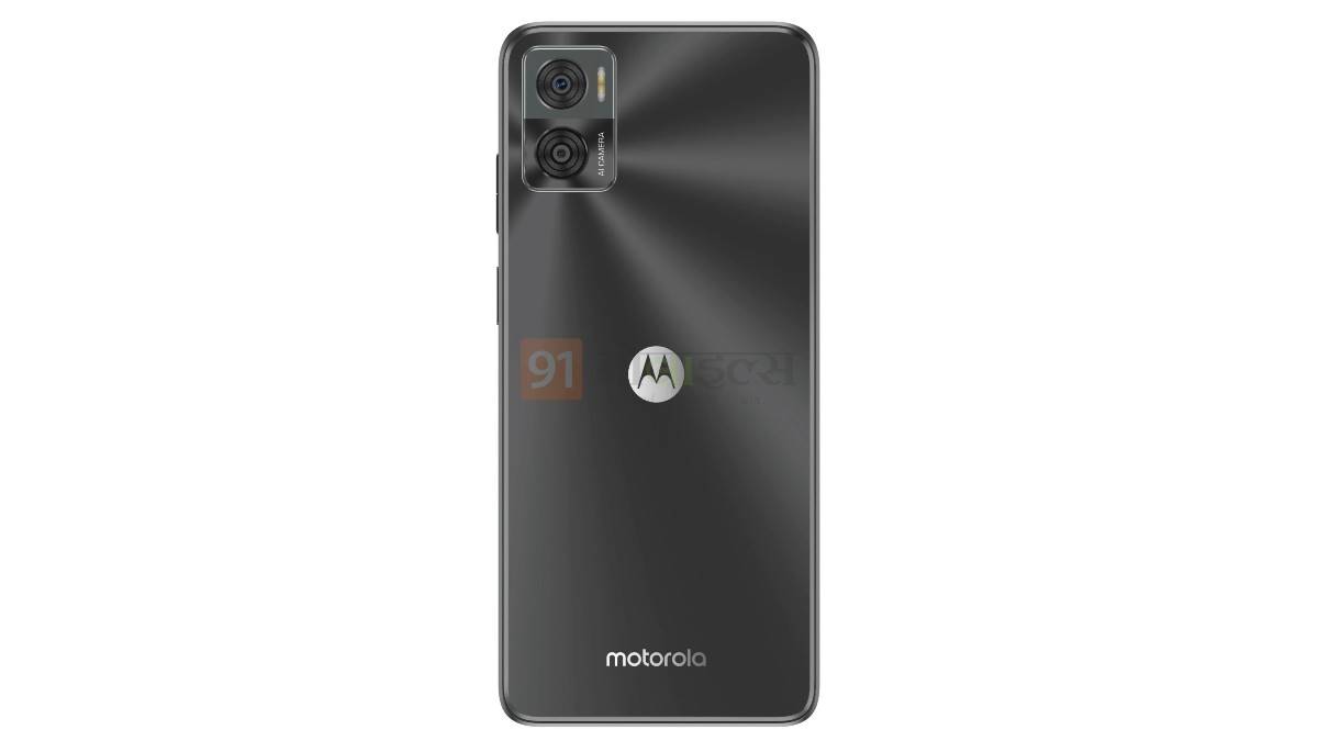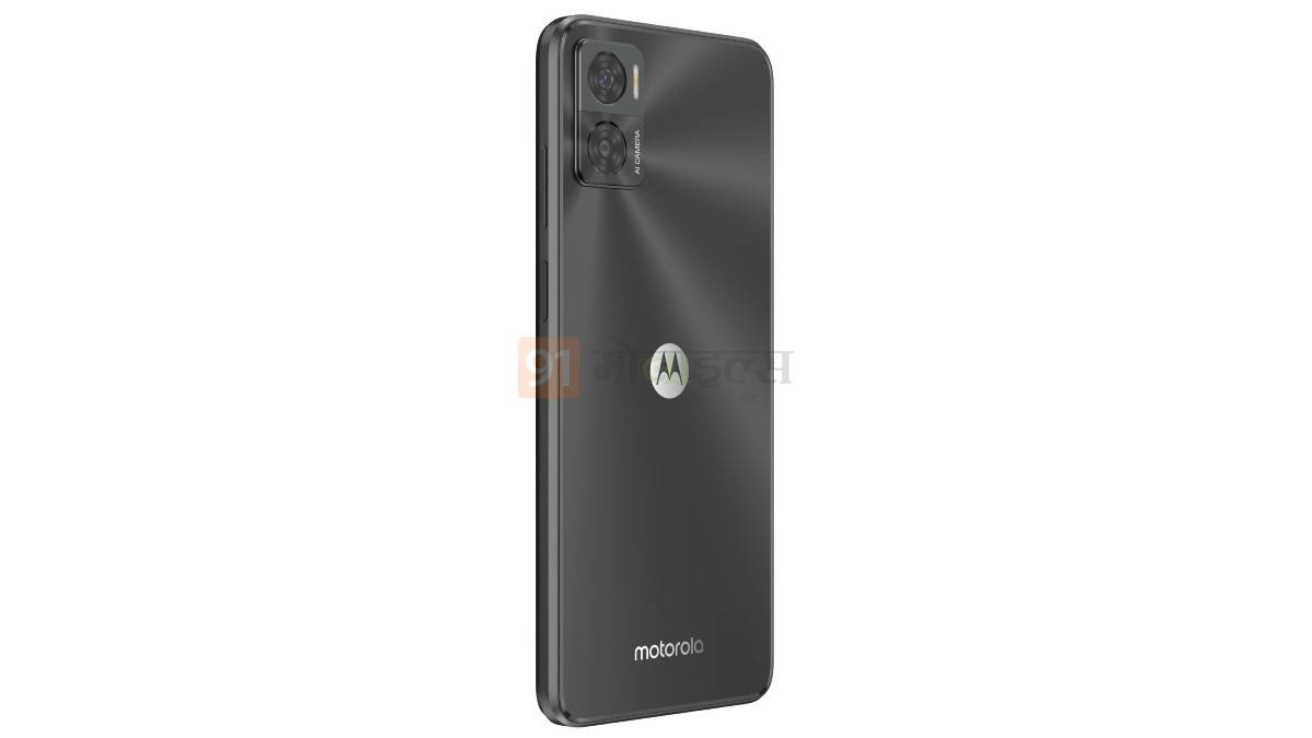 कुछ दिन पहले ही Motorola के बजट फोन Moto E22 को कुछ सर्टिफिकेशन साइट्स पर देखा गया था। ऐसे में माना जा रहा है कि जल्द ही कंपनी इसे करने वाली है। वहीं आज 91मोबाइल्स को इस फोन का एक्सक्लूसिव प्रेेस रेंडर मिला है जिससे आप फोन के डिजाइन और कलर के बारे में स्पष्ट जानकारी पा सकते हैं। हमें यह जानकारी भारत के प्रमुख टिप्सर सुधांशु अंभोर ने दी है। हमें जो रेंडर इमेज मिला है उसमें आप देख सकते हैं कि डार्क ग्रे कलर का फोन है जिसे बॉक्स डिजाइन में पेश किया गया है। फोन के बैक पैनल में डुअल कैमरा दिया गया है और उसी के साथ फ्लैश और AI कैमरे की जानकारी दी गई है।