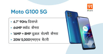 Moto G100 5G डुअल सिम फोन है जो डुअल मोड 5जी और 4जी वोएलटीई सपोर्ट करता है। साईड माउंटेड फिंगरप्रिंट सेंसर के साथ ही यह फोन गूगल असिस्टेंट बटन सपोर्ट करता है। वहीं पावर बैकअप के लिए इस फोन में 20वॉट टर्बोचार्जिंग फीचर से लैस 5,000एमएएच की बैटरी दी गई है। ग्लोबल मार्केट में इस फोन की कीमत 499.99 यूरो यानि तकरीबन 43,500 रुपये बताई गई है। बहरहाल इंडिया में इस फोन का दाम कम रहने की उम्मीद है, लेकिन मोटोरोला अपने फोन को भारत में कब लाएगी यह अभी पुख्ता नहीं कहा जा सकता है।