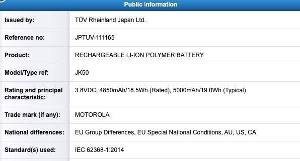 Motorola Capri को अमेरिकी सर्टिफिकेशन्स साइट एफसीसी और सर्टिफिकेशन्स वेबसाइट TUV Rheinland पर स्पाॅट किया गया है। एफसीसी पर यह फोन Motorola XT2127-1 और Motorola XT2127-2 माॅडल नंबर के साथ लिस्ट हुआ है। वहीं दूसरे सर्टिफिकेशन में बैटरी कैपेसिटी 4,850एमएएच रेटेड दिखाई गई है जो ईशारी करती है कि मोटोरोला का यह स्मार्टफोन 5,000एमएएच बैटरी के साथ लाॅन्च किया जाएगा। वहीं साथ ही Motorola Capri में 10वाॅट फास्ट चार्जिंग सपोर्ट दिए जाने की बात भी लिस्टिंग में सामने आई है।