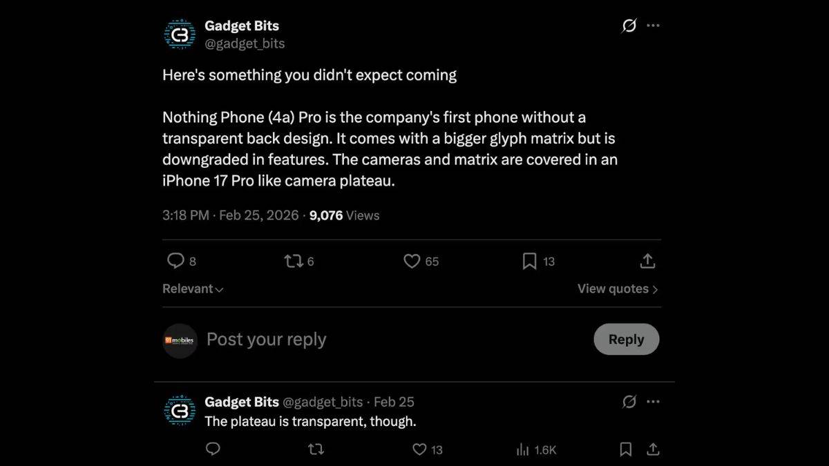 Phone 4a Pro will start ~40K and it’ll get a very polarising design is what I have heard‼️— Debayan Roy (Gadgetsdata) (@Gadgetsdata) March 1, 2026