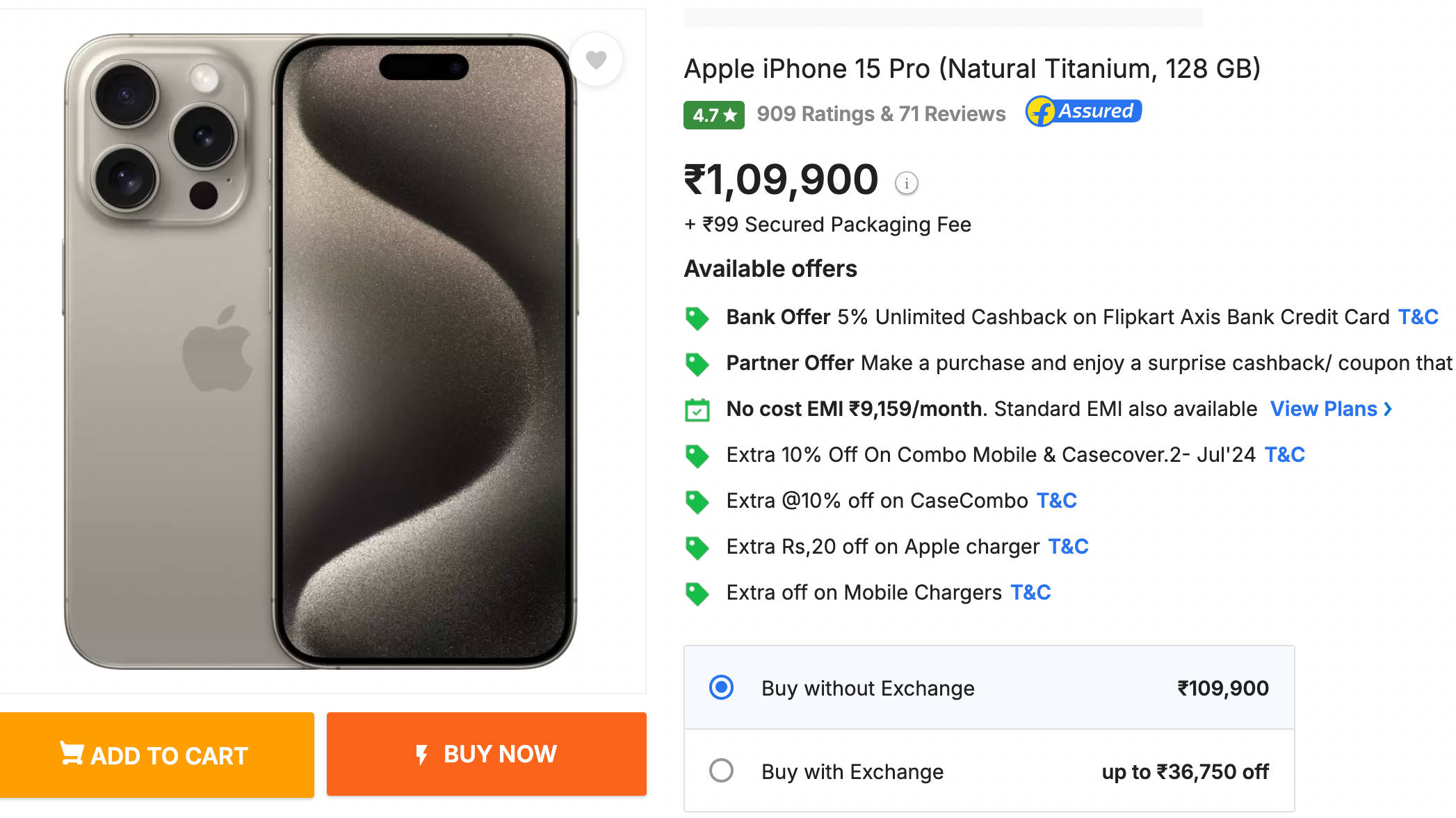 ऊपर लगी टेबल में आप देख सकते हैं कि कौन सी ई-कॉमर्स साइट आईफोन 15 प्रो को किस दाम पर बेच रही है। Croma, Reliance Digital और Flipkart पर यह एप्पल मोबाइल सबसे सस्ता मिल रहा है जहां इसे 1,09,900 रुपये में खरीदा जा सकता है।