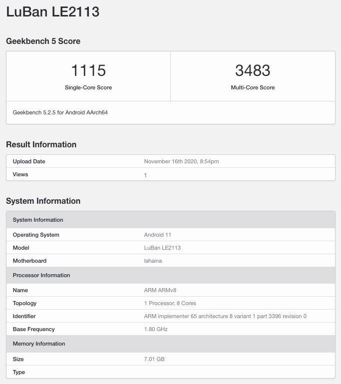 बेंचमार्किंग स्कोर की बात करें तो गीकबेंच पर वनप्लस 9 को सिंगल-कोर में जहां 1122 स्कोर प्राप्त हुआ है वहीं मल्टी-कोर में इस फोन को 2733 स्कोर दिया गया है। इसी तरह वनप्लस 9 प्रो को सिंगल-कोर में 1115 स्कोर प्राप्त हुआ है गीकबेंच ने इस फोन को मल्टी-कोर में 3483 स्कोर दिया है। वनप्लन 9 सीरीज़ के इन स्मार्टफोन की अन्य स्पेसिफिकेशन्स की पुख्ता जानकारी के लिए फिलहाल इंतजार किया जा रहा है।