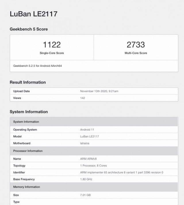 OnePlus 9 और OnePlus 9 Pro को गीकबेंच पर ‘Lahaina’ कोडनेम वाले मदरबोर्ड से लैस बताया गया है। मीडिया रिपोर्ट्स की मानें तो यह कोडनेम क्वॉलकॉम के आने वाले चिपसेट का है जिसे बाजार में स्नैपड्रैगन 875 नाम के साथ उतारा जाएगा। लगभग तय है कि क्वॉलकॉम स्नैपड्रैगन 875 एक 5G चिपसेट होगा और प्रोसेसिंग के मामले में बेहद ही फास्ट और स्मूथ रहेगा। कहा जा सकता है कि वनप्लस 9 एक 5जी सीरीज़ होगी जो पावरफुल स्पेसिफिकेशन्स से लैस रहेगी।
