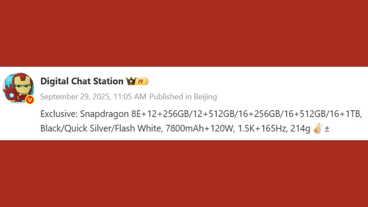 OnePlus अक्टूबर में चीन में अपने दो नए फ्लैगशिप स्मार्टफोंस OnePlus 15 और OnePlus Ace 6 लॉन्च करने वाला है। वहीं, लॉन्च से पहले टिपस्टर डिजिटल चैट स्टेशन ने Ace 6 से जुड़े कई अहम स्पेसिफिकेशंस शेयर किए हैं। जिसमें रैम, स्टोरेज वेरिएंट्स, प्रोसेसर, बैटरी और फास्ट चार्जिंग की जानकारी सामने आ गई है। आइए, आगे पूरी डिटेल्स जानते हैं।