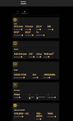 Camera FV5 वेबसाइट से पता चलता है कि फोन में 16MP का कैमरा सेंसर दिया जाएगा। फोन में पिक्सल बाइनिंग टेक्नोलॉजी दी जाएगी, जो इस कैमरा सेंसर के आउटपुट को 64MP का कर देगा। इस कैमरा सेंसर का अपर्चर f/1.7 और फोकल लेंथ 26.2mm होगा।
