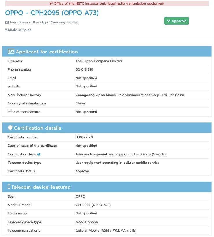 OPPO के ये दोनों फोन दरअसल सर्टिफिकेशन्स साइट पर लिस्ट हो गए हैं। OPPO A73 को जहां एनबीटीसी पर देखा गया है वहीं OPPO A53 फोन एनबीटीसी के साथ ही आईएमडीए सर्टिफिकेशन अथॉरिटी पर भी सामने आया है। ओपो ए73 को वेबसाइट पर जहां CPH2095 मॉडल नंबर के साथ लिस्ट किया गया है। वहीं ओपो ए53 CPH2137 मॉडल नंबर के साथ सामने आया है। सर्टिफिकेशन्स साइट पर फोन के नाम का खुलासा होने के साथ ही कुछ अहम स्पेसिफिकेशन्स की जानकारी भी हाथ लगी है।