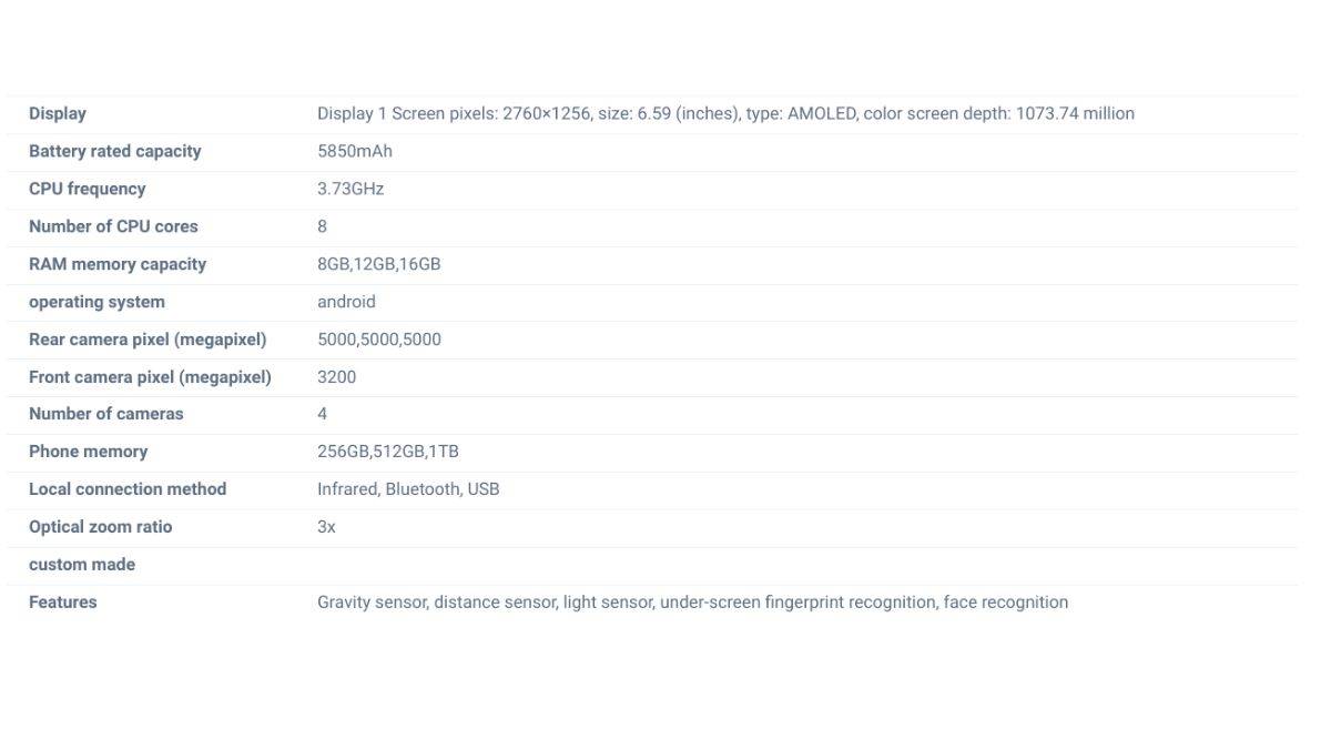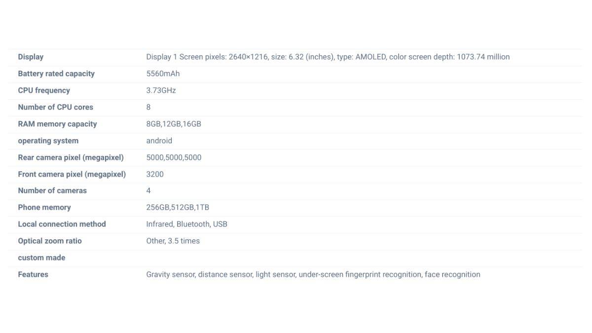 • डिस्प्ले: फोन में 6.32-इंच AMOLED स्क्रीन (2640 x 1216 पिक्सल, 1073.74 मिलियन कलर डैप्थ) के साथ मिलने की उम्मीद है।