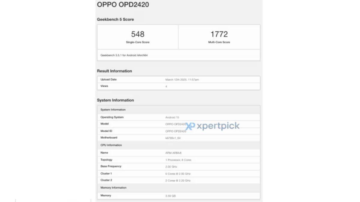 - डेटाबेस के अनुसार, OPPO Pad SE में 4GB रैम होगी और यह Android 15 OS के साथ लॉन्च होगा।