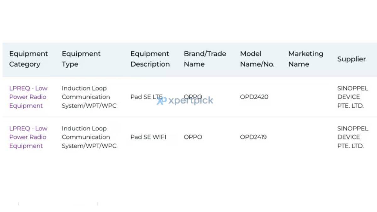 - OPPO Pad SE को IMDA सर्टिफिकेशन में OPD2420 और OPD2419 मॉडल नंबर के साथ लिस्ट किया गया है।