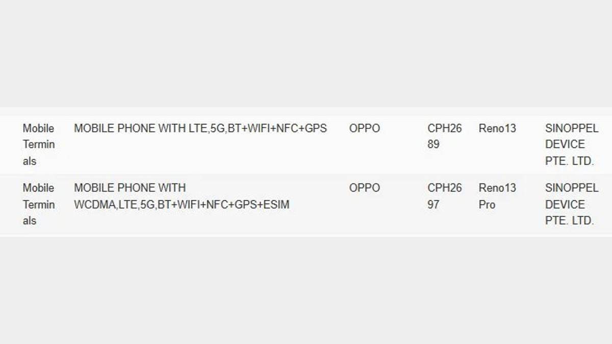 - जैसा कि आप नीचे दिए गए इमेज में देख सकते हैं रेनो 13 और रेनो 13 प्रो सिंगापुर के IMDA सर्टिफिकेशन प्लेटफार्म पर स्पॉट हुए हैं।