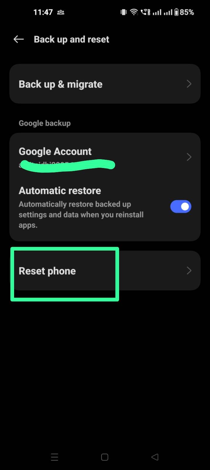 स्टेप-3: इसके बाद आपको बैकअप ऐंड रीसेट वाले ऑप्शन पर जाना होगा। इसके बाद रीसेट फोन वाले ऑप्शन पर जाएं।
